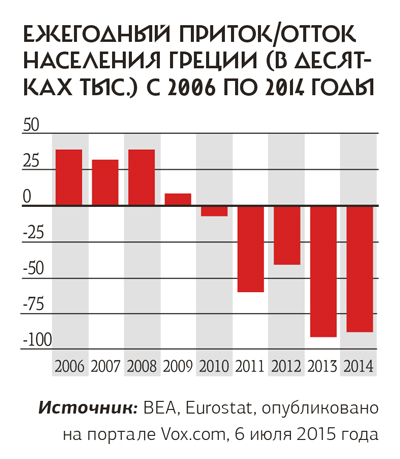 Не будем забывать, что Греция всего 40 лет назад избавилась от «черных полковников» — военной диктатуры, и ещё далеко не старые граждане помнят необходимость получения разрешения на выезд за рубеж, запрет на валютные вклады и многие другие аналогичные «радости» авторитаризма. Как показывает российский опыт, воспоминания о недавнем прошлом — даже и удручающем — далеко не всегда выступают прививкой от популистской демагогии. Уже в 2013–2014 годах в Греции был зафиксирован почти 100-тысячный ежегодный отток населения, и в 2015–2016 годах он может оказаться в 3–4 раза больше: имея евро и право на выезд, состоятельные и активные граждане будут стремительно покидать страну (напомню, что из России в 2014 году уехали 400 тыс. человек при среднем показателе 38 тыс. в 2009–2011 годах — и это урок для Греции). По мере архаизации греческого общества число поклонников правоэкстремистской партии «Новая заря» и самых радикальных элементов той же ципрасовской «Сиризы» будет расти, и появление их у руля страны, из которой бегут лучшие люди, вполне реально.