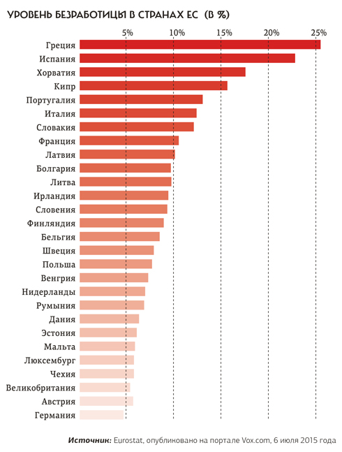 ▶ Налоговая задолженность в Греции, по данным ОЭСР, составляет 89,5%: у греческого государства самая низкая собираемость налогов в ЕС. Уровень безработицы превышает 25%.