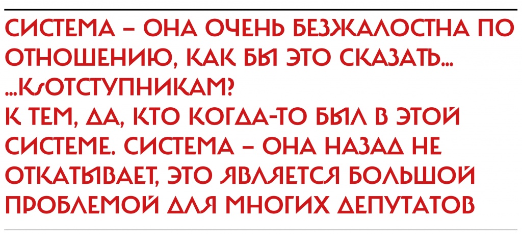 …к отступникам? К тем, да, кто когда-то был в этой системе. Система — она назад не отка тывает, и я думаю, что это является большой проблемой для многих депутатов.