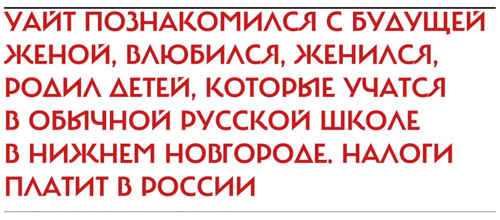 В свободное от полезной для России деятельности Уайт познакомился на вечеринке с будущей женой, влюбился, женился, родил детей, которые учатся в обычной русской школе в Нижнем Новгороде. Налоги платит в России. Уезжать не собирается. Во всяком случае — пока.