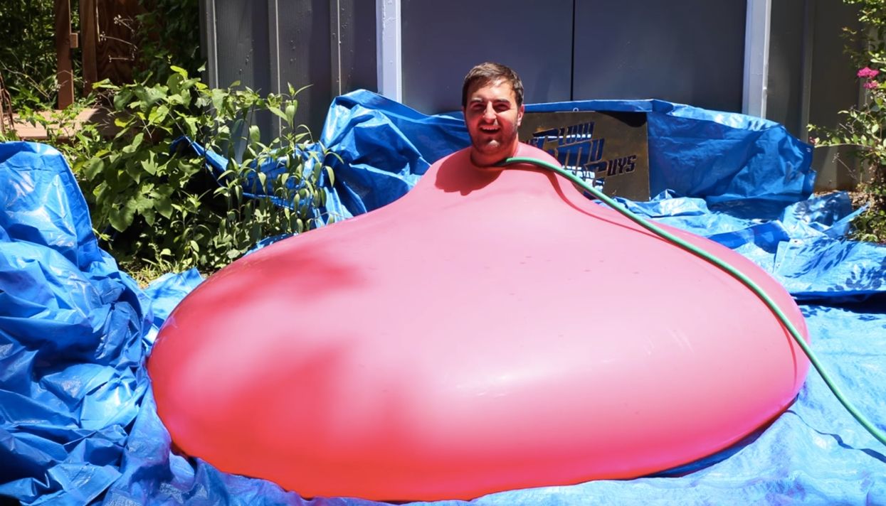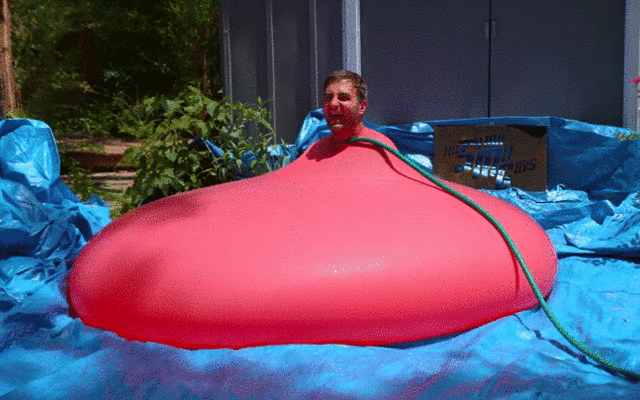 Британские видеоблогеры The Slow Mo Guys решили взглянуть, как лопается большой шарик с водой. Даже огромный шар. Внутри которого сидит человек.