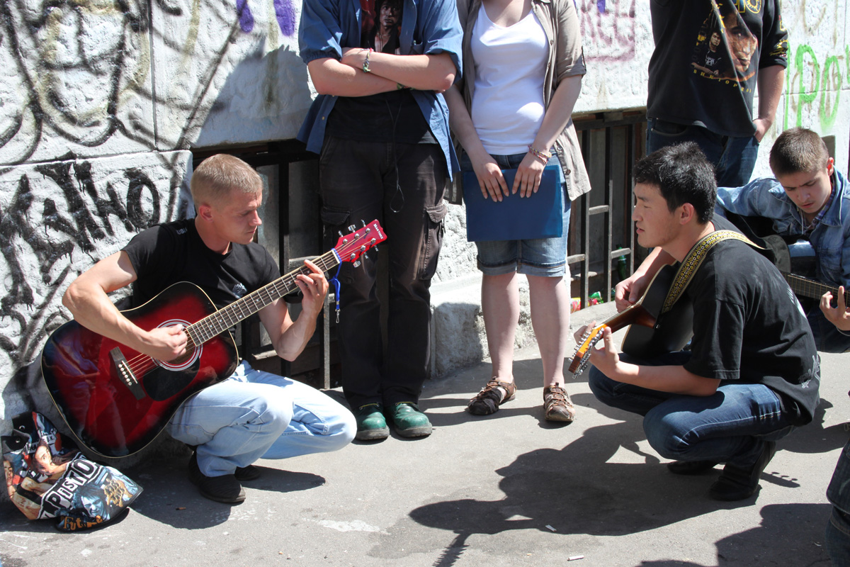 В Москве на Арбате задержаны три уличных музыканта и худождница, которые попытались провести флешмоб, приглашая на серию одиночных пикетов в будущий четверг.