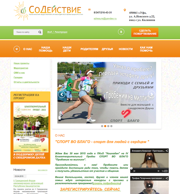 Обновленный сайт Региональной общественной организации родителей детей с синдромом Дауна Республики Башкортостан «СоДействие» заработал по своему основному адресу: roosd.ru 15 июля 2015 года.
