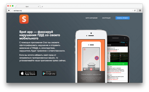 Задача приложения Spot упрощение системы подачи заявлений, связанных с нарушениями правил парковки или состояния проезжей части.