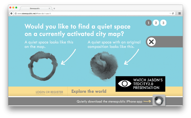 В качестве сопровождения сервис предоставляет пользователям релаксационную музыку, а карту можно пополнить новыми объектами самостоятельно.