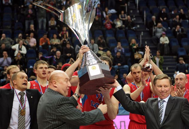 Фото: Дмитрий Лебедев / Коммерсантъ Генеральный директор баскетбольного клуба ЦСКА Андрей Ватутин (слева), президент Российской федерации баскетбола (РФБ) Сергей Чернов (в центре) и заместитель председателя правительства России Сергей Иванов (справа) во время церемонии награждения кубком России по баскетболу. 19 марта 2010 года