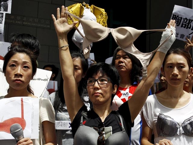 В гонконгском марше, по оценке AFP, приняли участие около 100 человек. Некоторые несли лифчики в руках, другие - надели поверх одежды. "Будьте осторожны, однажды полиция обвинит нас в нападении с помощью пениса или задницы", - заявил один из мужчин-активистов в лифчике.
