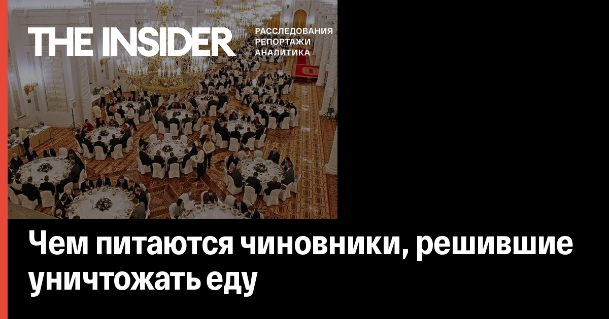 Напоследок The Insider предлагает ознакомиться с типичным кремлевским меню, чтобы ознакомиться с тем, чем питаются люди, принимавшие решение об уничтожении продуктов (содержание меню известно из попавшей в открытый доступ переписки «кремлевского повара» Евгения Пригожина) :Рабочий ужина в Ново-Огарево: