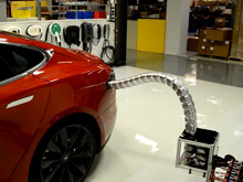 Американская компания Tesla Motors опубликовала в четверг видео с прототипом роботизированного зарядного устройства для электромобилей Tesla в виде почти метровой металлической змейки, которая мгновениями напоминает готовящуюся к атаке кобру.