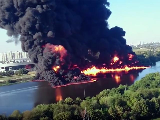 В Москве несколько часов горела река - то ли разрыв трубы "Транснефти", то ли "разборки местного бизнеса"