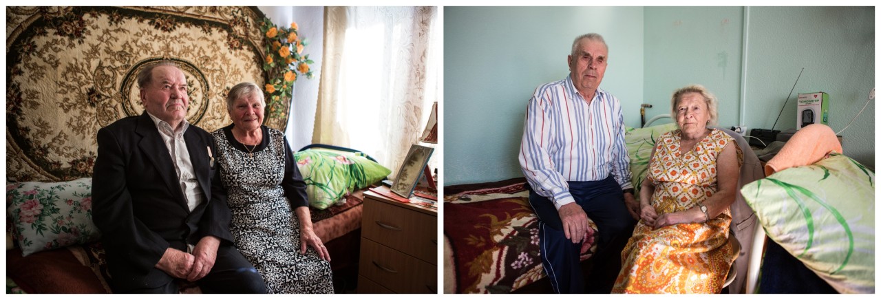 Слева: Михаил Иванович и Анна Васильевна. Справа: Виктор Петрович и Галина НиколаевнаФото: Алексей Лощилов для ТД В интернате живет еще одна пара. Абсолютно слепой Виктор Петрович и тихая Галина Николаевна. Им нравится заботиться друг о друге. Раньше Виктор Петрович не мог ни с кем ужиться — жаловался, что ночью все женщин приводят и не дают ему спать. Тогда Андрей Миронович решил лично проверить, что происходит, и остался ночью ждать прихода «женщин». Женщины не пришли: Виктор Петрович считает, что заметили Андрея Мироновича и испугались. Вместе с Галиной Николаевной Виктор Петрович живет с мая. «Нам тут хорошо, спасибо дому-интернату за все», — повторяет Галина Николаевна.