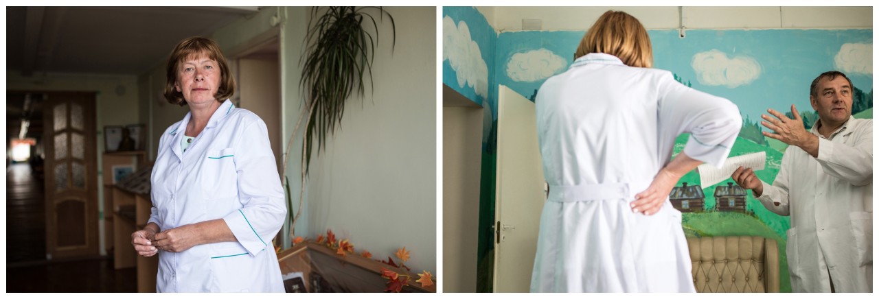Слева: директор интерната Наталья Владимировна. Справа: Наталья Владимировна и врач Андрей МироновичФото: Алексей Лощилов для ТД Наталья Владимировна и заведующий отделением (он же единственный врач в доме-интернате) Андрей Миронович с гордостью показывают свое хозяйство: расписанную в цветочек розовую столовую, домашний храм, солидную прачечную, кабинет ЛФК, гостиную с телевизором, стиральной машиной и микроволновой печью («им нравится проявлять самостоятельность»), будущий класс компьютерной грамотности (проект «Мы тоже хотим общаться»). Показывают и душевую на первом этаже. В доме-интернате для престарелых я впервые — душевая мне кажется слишком мрачной и неуютной. «А почему у тебя такое лицо? Что бы ты тут переделала? Тут подвозим в передвижной ванне лежачих больных, которые не могут сидеть, и моем. Вот прибор для дополнительного обогрева поставили, чтобы зимой теплее было».