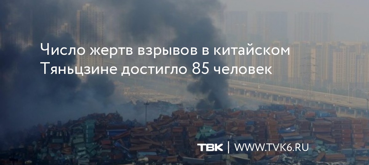 Жертвами серии взрывов на складе с опасными веществами в городе Тяньцзинь в Китае стали, по последним данным, 85 человек, передает «Синьхуа» со ссылкой на местные власти.