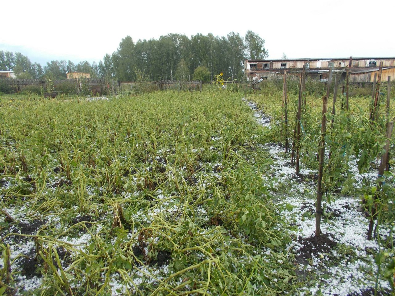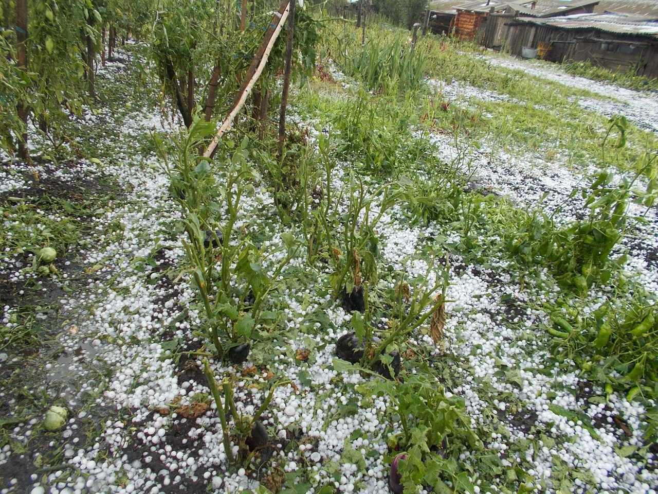 Град шёл в пятницу, около 3 часов дня на протяжении 10 минут. Судя по фотографиям, град пробил даже арбузы.