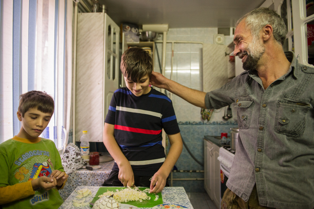 Обычно Николай не готовит дома — этим занимается его жена Одыля. Но для меня он сделал исключение: Николая готовит национальное афганское блюдо из баранины и овощей. Акбар и Ахмад помогают ему на кухне.Фото: Алексей Николаев