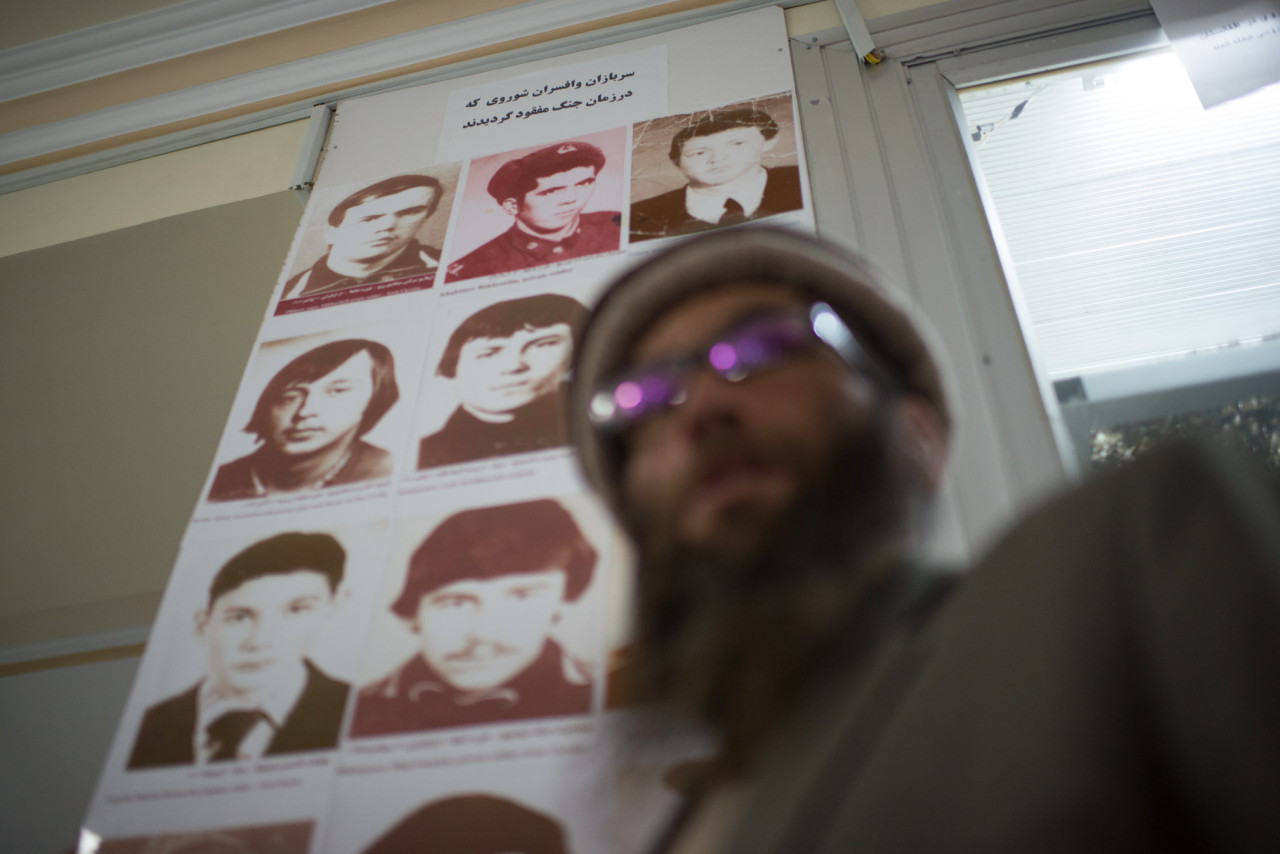 Бахретдин в Музее Джихада. На стенде — фотографии пропавших во время боев в провинции Герат советских солдат. Его портрет — второй в верхнем ряду.Фото: Алексей Николаев Сергей Краснопёров