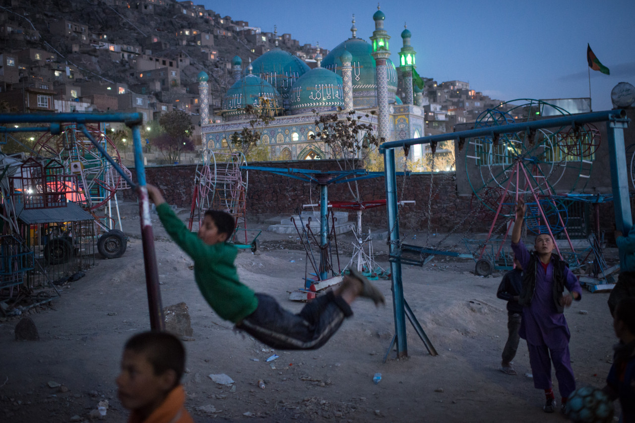 Дети играют возле мечети в Кабуле.Фото: Алексей Николаев Покидая пределы Кабула, ты оказываешься в XIX веке. В некоторых местах люди столетиями не меняют образ жизни. В Чагчаране о цивилизации напоминали только остовы БТР и оторванные башни танков вдоль обочин. Местные подозрительно реагировали на человека с камерой, но пары слов на русском оказалось достаточно, чтобы встретить радушный прием. Здесь прекрасно помнят, что именно русские построили единственную больницу в округе и проложили дороги к нескольким аулам. В Афганистане удивительно красиво и жутко небезопасно. Помню, на обратном пути из города Кундуз на самой высокой точке перевала у машины порвался ремень ГРМ. Часть пути мы просто катились под уклон, иногда подталкивая машину на ровных участках дороги. Поражались горным красотам и молились, чтобы нашу черепашью процессию кто-нибудь ненароком не подстрелил.