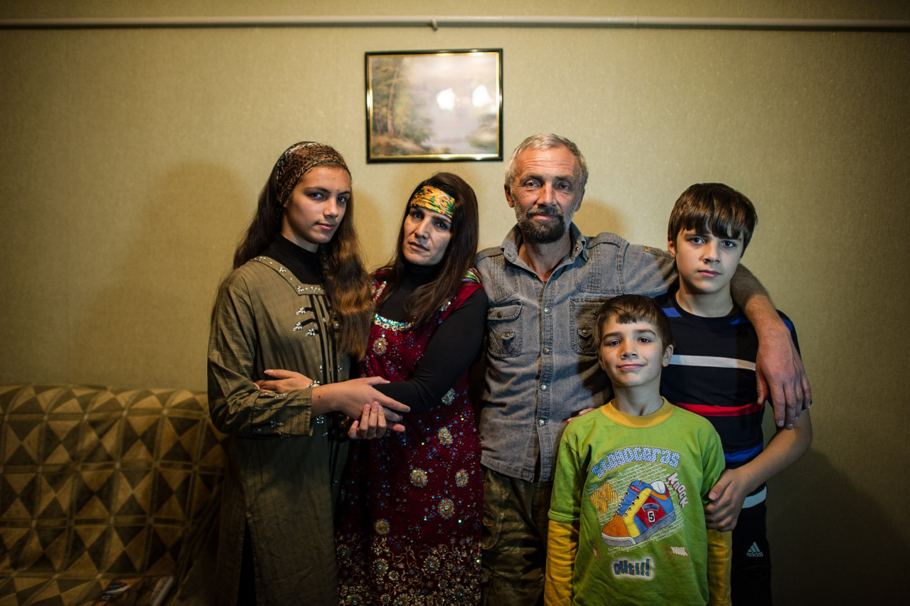 Николай Быстров с женой Одылей, дочерью Катей и сыновьями Ахматом и Акбаром. Мальчики ходят в школу, Катя учится на медицинском факультете. В отличие от братьев Катя одевается как мусульманка: носит длинные платья и платок на голове. Она говорит на фарси и арабском также свободно, как на русском, и в основном общается с ровесницами из Дагестана и Чечни.Фото: Алексей Николаев