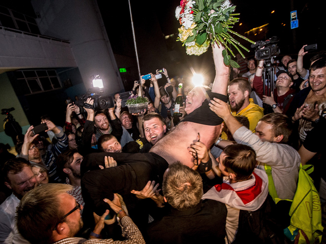 Как сообщает "Наша Нiва", политик вышел из маршрутки со словами "Жыве Беларусь!", после чего граждане начали скандировать "Герой!" и подняли его на руки. Оппозиционер признался, что не писал прошения о помиловании и не надеялся, что Лукашенко освободит его до выборов. Также экс-кандидат в президенты добавил, что не собирается уезжать из страны.