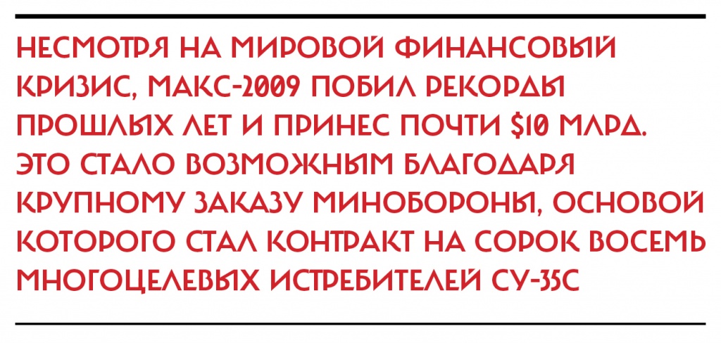 МАКС-2005 заявил в графе «доход» уже около $5 млрд от продаж авиатехники и деталей, а МАКС-2007 снизил эту отметку до $3 млрд. В 2007 году солидная часть прибыли образовалась за счет договоренностей с военными ведомствами Индонезии и Чили, принесшими в сумме свыше $700 млн. Несмотря на мировой финансовый кризис, МАКС-2009 побил рекорды прошлых лет и принес почти $10 млрд. Это стало возможным благодаря крупному заказу Минобороны, основой которого стал контракт на сорок восемь многоцелевых истребителей Су-35С. Спустя шесть лет он еще не закрыт – последние машины будут поставлены на вооружение в конце этого года.