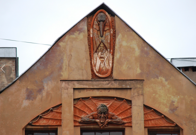С фасада доходного дома Лишневского, что на Лахтинской, 24, сбит барельеф Мефистофеля