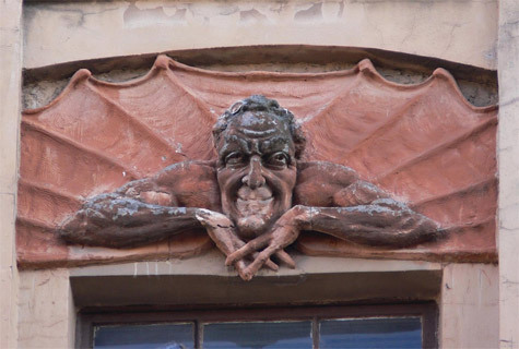 © Вадим Ф. Лурье В среду, 26 августа, на Лахтинской улице в Петербурге неизвестные сбили скульптуру Мефистофеля с фасада здания, являющегося памятником архитектуры.