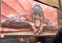 На Доме с Мефистофелем не дали повесить баннер с фотографией горельефа