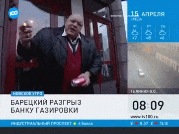 On August 21, the same St. Petersburg Cossack society that once commissioned a bust of Vladimir Putin, depicting him as a Roman emperor, raided a local supermarket, in search of banned Western imports for sale. The colorful musician Stas Baretsky, a tall, bald, heavyset man in a large red sport coat, stole the show, when he presented himself as the Cossacks' "Minister of Culture" and started tearing into cans of beer with his bare teeth. Apparently Baretsky deemed illegally imported anything bearing a label written in Latin script.