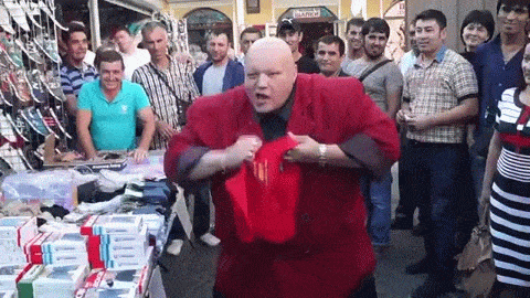 At an outdoor market, he found some imported underwear, too. It wasn't easy, but he ripped them in two.