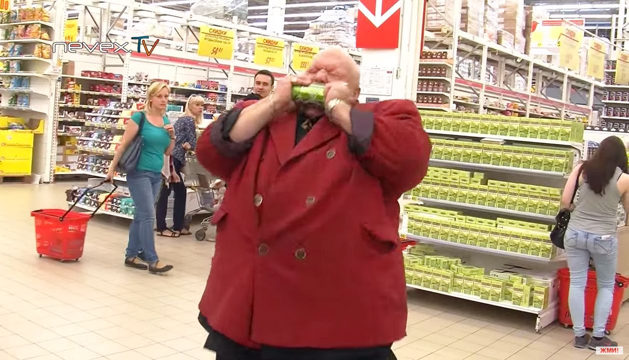 After inspecting some sunflower oil, Baretsky chomped through some beer, and demanded that the store replace the cans with something brewed at home in Russia.