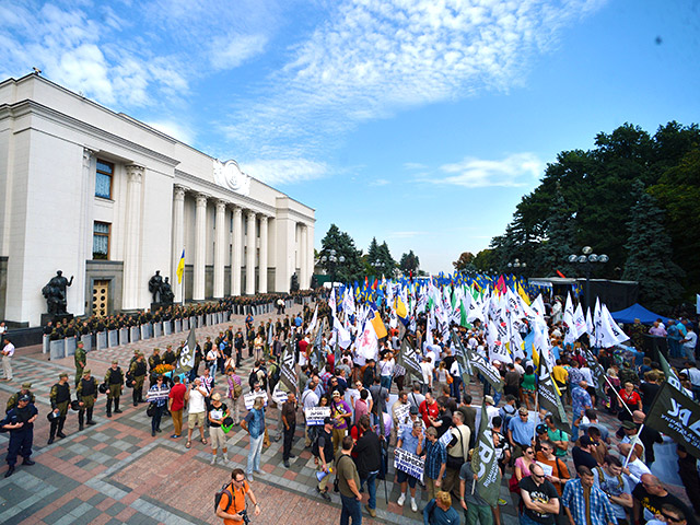 На этом фоне перед Радой с утра вышли на митинг противники принятия изменений в Конституцию Украины в части децентрализации. Как передает корреспондент агентства "Интерфакс-Украина", около полутысячи активистов собрались на Площади Конституции возле парламента. Большинство из них - активисты ВО "Свобода". Вместе с ними протестуют активисты Радикальной партии Олега Ляшко и УКРОПа.