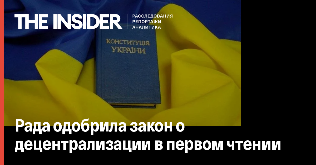 Верховная рада Украины предварительно одобрила президентский законопроект о внесении изменений в конституцию страны в части децентрализации власти. За проект постановления в первом чтении проголосовали 265 народных депутатов из 368.