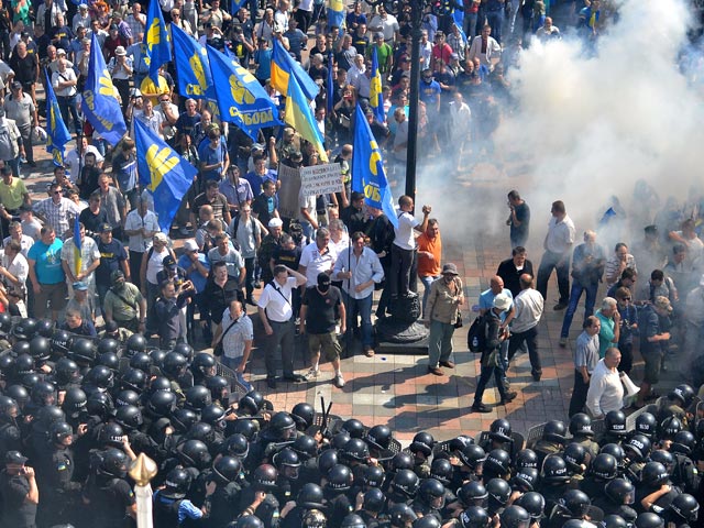 В понедельник, 31 августа, Верховная Рада Украины в первом чтении 265 голосами одобрила президентский законопроект о внесении изменений в Основной закон страны в части децентрализации власти. На фоне принятия поправок внутри и снаружи здания Верховной Рады нарастал протест представителей радикальных движений. Радикалы воспринимают положение закона о децентрализации об особенностях осуществления местного самоуправления в отдельных районах Донецкой и Луганской областей как "особый статус" Донбасса и узаконивание сепаратизма.