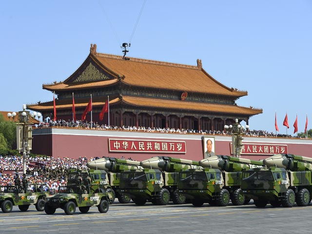 Присутствующие на параде смогли увидеть межконтинентальные баллистические ракеты DF-5 ("Дунфэн-5") и DF-31 ("Дунфэн-31"), беспилотные летательные аппараты китайской разработки. По площади также проследовали колонны танков, самоходных артиллерийских установок, бронетранспортеров различных родов войск НОАК, в зависимости от чего они были окрашены в зеленый, голубой и светло-бежевый камуфляж, - в общей сложности 500 единиц, передает ТАСС.