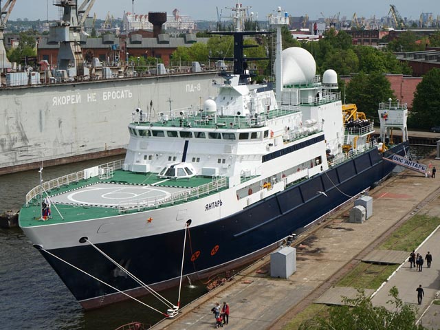 Чиновники Минобороны США считают, что "Янтарь" собирает разведданные о подводных датчиках и другом оборудовании, используемом на американских субмаринах. По мнению аналитиков в сфере разведки, один из новейших военно-исследовательских кораблей России, спущенный на воду в начале этого года, является частью крупной стратегической разведывательной операции Москвы, направленной на изучение американских АПЛ, ракетоносцев и других целей.