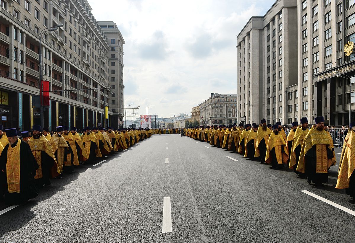 Всего за два дня в городе прошло более 500 праздничных мероприятий. Нашлось в этом списке место и для крестного хода: в воскресенье 10 тысяч человек прошли от Кремля к Высоко-Петровскому ставропигиальному монастырю. Выглядело эффектно.