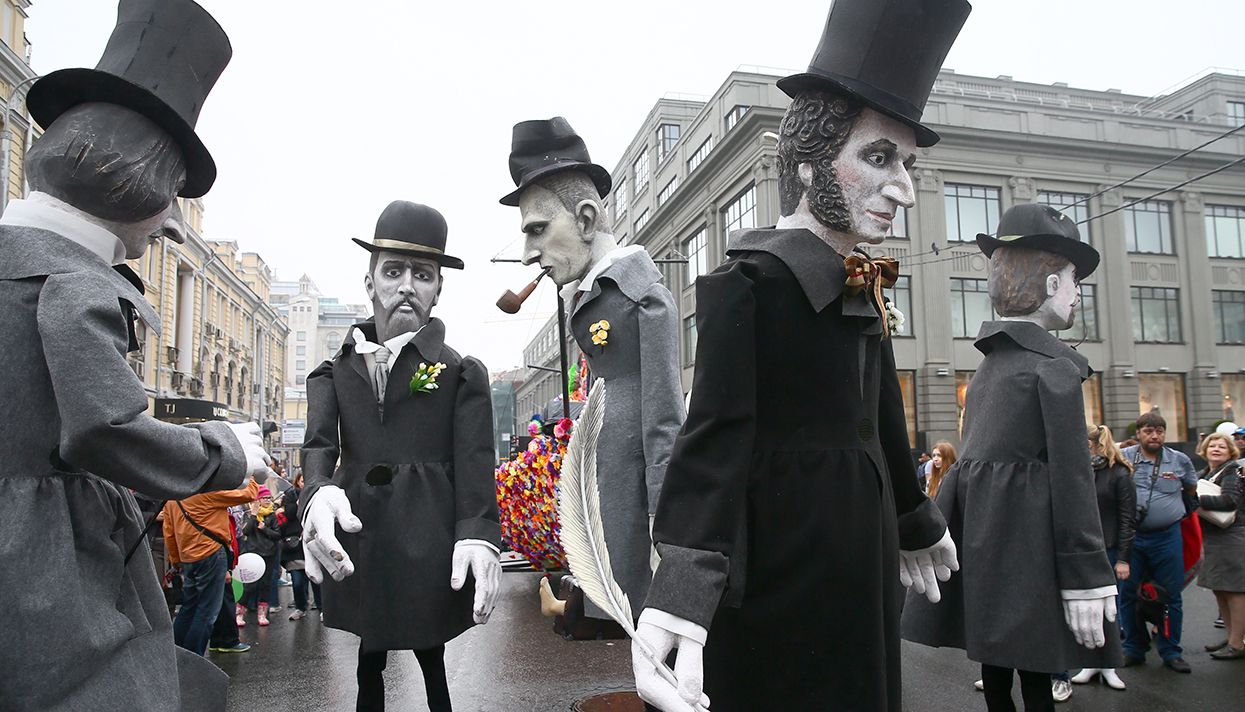 Впрочем, дождь не помешал праздничным мероприятиям. На Тверской развернули исторический фестиваль «Москва триумфальная» — зрителям показывали театрализованные представления о главных вехах в истории столицы и России.