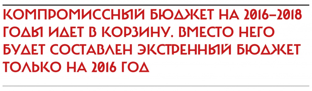 № 27 от 31 августа 2015 года) среднегодовая цена нефти в 2016 году — $40 за баррель. Правда, базовым сценарием предлагалось считать (вопреки, заметим, очевидному) не $40 за баррель, а $60. 31 августа премьер-министр Дмитрий Медведев, а вслед за ним и министр финансов объявили: компромиссный бюджет на 2016–2018 годы идет в корзину. Вместо него будет составлен экстренный бюджет только на 2016 год, для чего потребуется править Бюджетный кодекс.