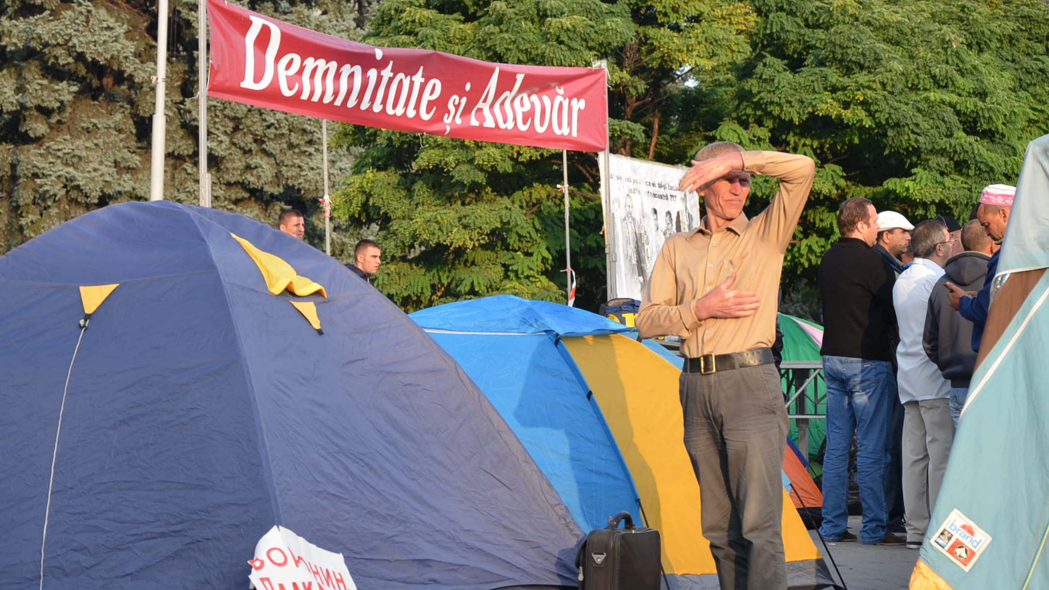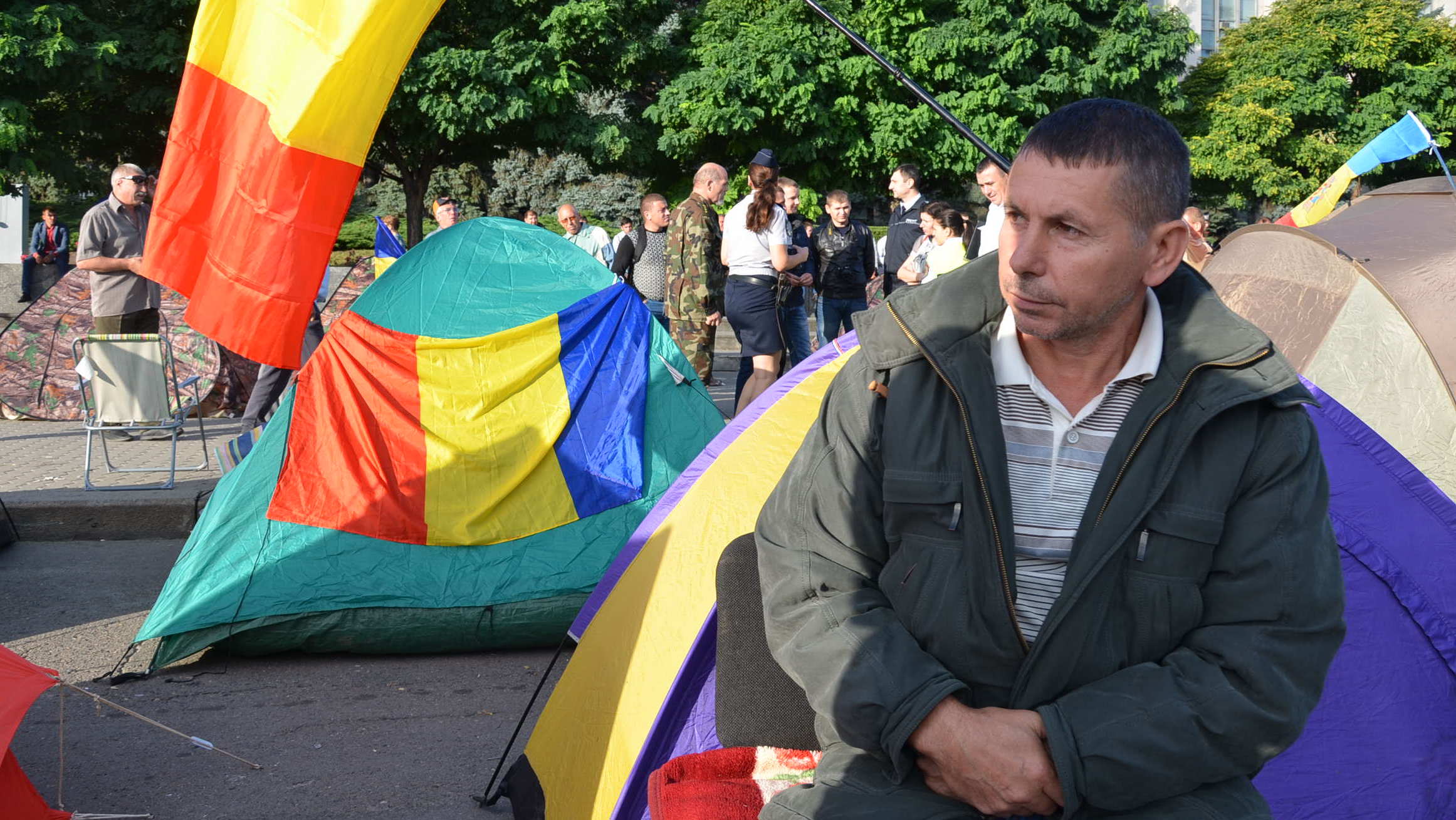 – Я думаю, уже можно говорить о том, что движение постепенно начинает приобретать постоянные организационные формы. Если вчера к полуночи на площади в центре Кишинева было установлено около 30–40 палаток, уже сегодня к утру их было более сотни. В полдень состоялся небольшой митинг, на котором представители инициативной группы Гражданской платформы вышли к протестующим, рассказали о дальнейших планах, сообщили, что была создана рабочая группа для решения текущих вопросов. То есть начато формирование штаба, который будет действовать на площади все время. Движение в центре города не прекращается: кто-то оставался ночевать в палатках, кто-то пришел утром, заменил товарищей. Инициативная группа, организаторы протеста, вчера на митинге зачитали резолюцию. В этом документе выдвинут целый ряд требований к власти: отставка президента, организация внеочередных, досрочных выборов не позднее марта 2016 года, отставка руководителей политических структур, организация прямых выборов президента. До тех пор, пока все эти требования не будут выполнены, как уверяют протестующие, они не уйдут с площади.