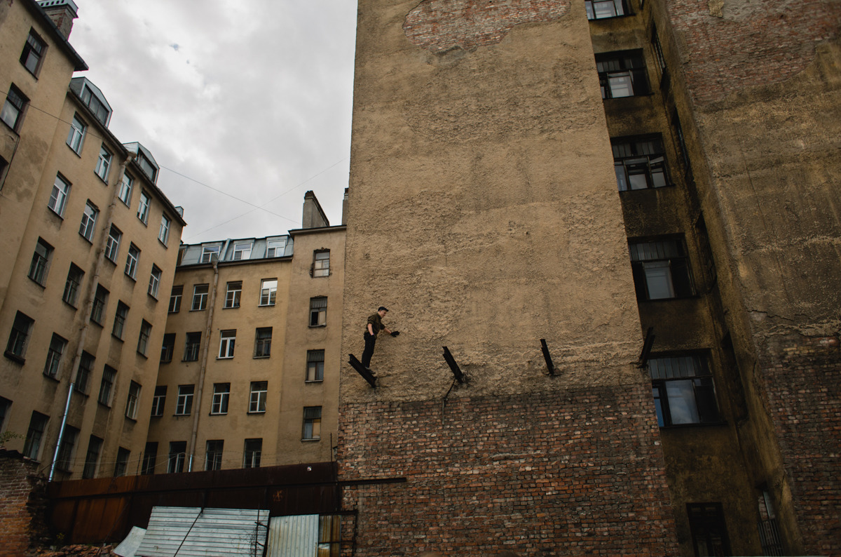 «Товарищ Кетчуп» стоит на балке, решаясь на прыжок. Он участвует в антифашистских и анархистских движениях России и не разрешает фотографировать свое лицо.Саня «Цой»: «Я понимаю, что анархию я могу создать вот здесь в этой комнате с друзьями, а там, за дверью, — уже нет, там я часть этого общества потребления, этого капитализма, этого всего… и там вообще всем по ***, что я думаю, по большему-то счету. В данный момент мы можем создать небольшие анархистские ячейки и жить согласно общечеловеческим ценностям. Не материальным, не капиталистическим, а именно общечеловеческим. А основная ценность — жизнь, равноправие, любовь».Фото: Ксения Иванова/фотоконкурс "Прямой Взгляд"