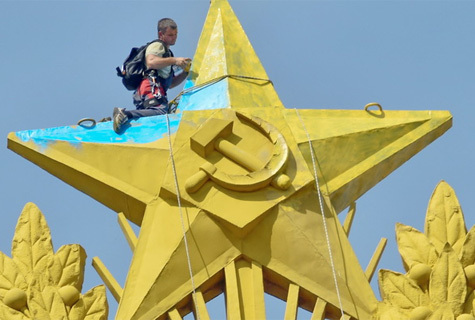 Ответственность за раскрашивание звезды на шпиле высотного здания на Котельнической набережной в Москве, которое произошло в ночь на 20 августа 2014 года, взял на себя украинский руфер Гриша Ушевец (Мустанг). Он был объявлен в международный розыск и арестован судом заочно.