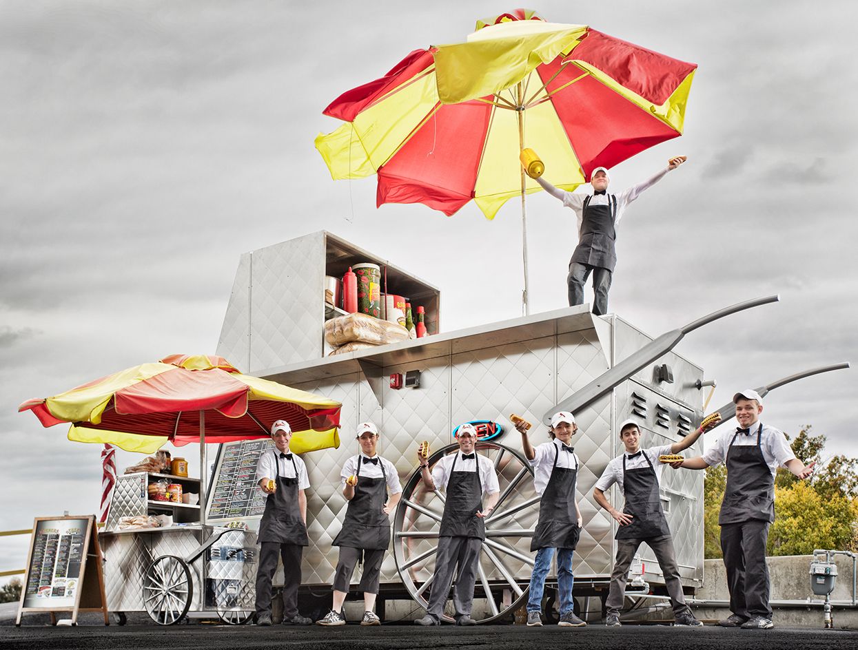 Самая большая тележка с хот-догами была создана 44-летним американцем Маркусом Дэйли. Тележка высотой 3,72 метра, длиной 7,06 метра и шириной 2,81 метра позволяет Дэйли обслуживать до 300 человек в день. Внутри тележки есть даже туалет.