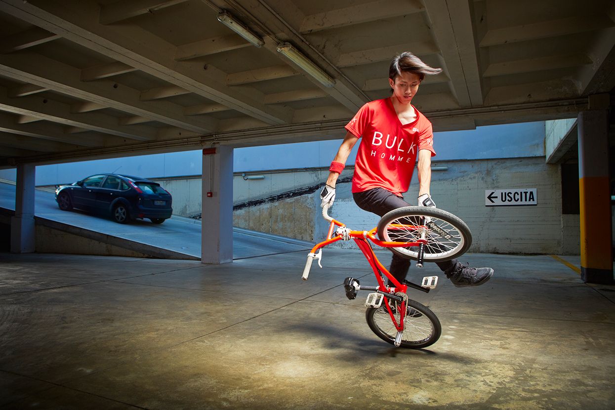 Токиец Такахиро Икеда поставил рекорд по количеству трюков «машина времени», сделанных на BMX. Во время трюка спортсмен становится таким образом, как показано на фото ниже, и вращается вокруг своей оси. Икеда сделал 83 полных оборота за минуту.