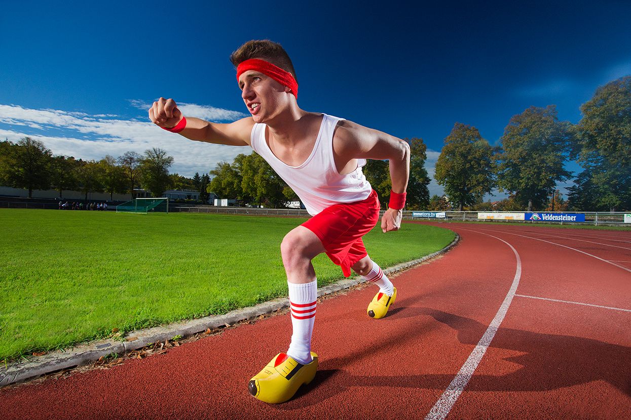 Андре Орлтоф из немецкого Аугсбурга упоминается в книге рекордов Гиннесса трижды: он быстрее всех пробежал стометровку в лыжных ботинках (17,65 секунды) и деревянных башмаках (16,27 секунды).