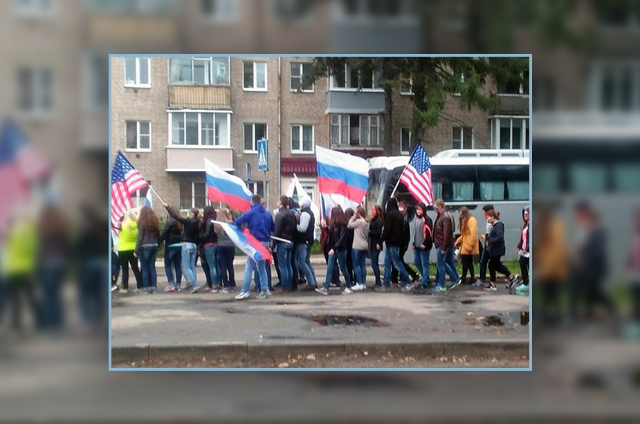 Массовое шествие с флагами США прошло в Костроме возле УМВД