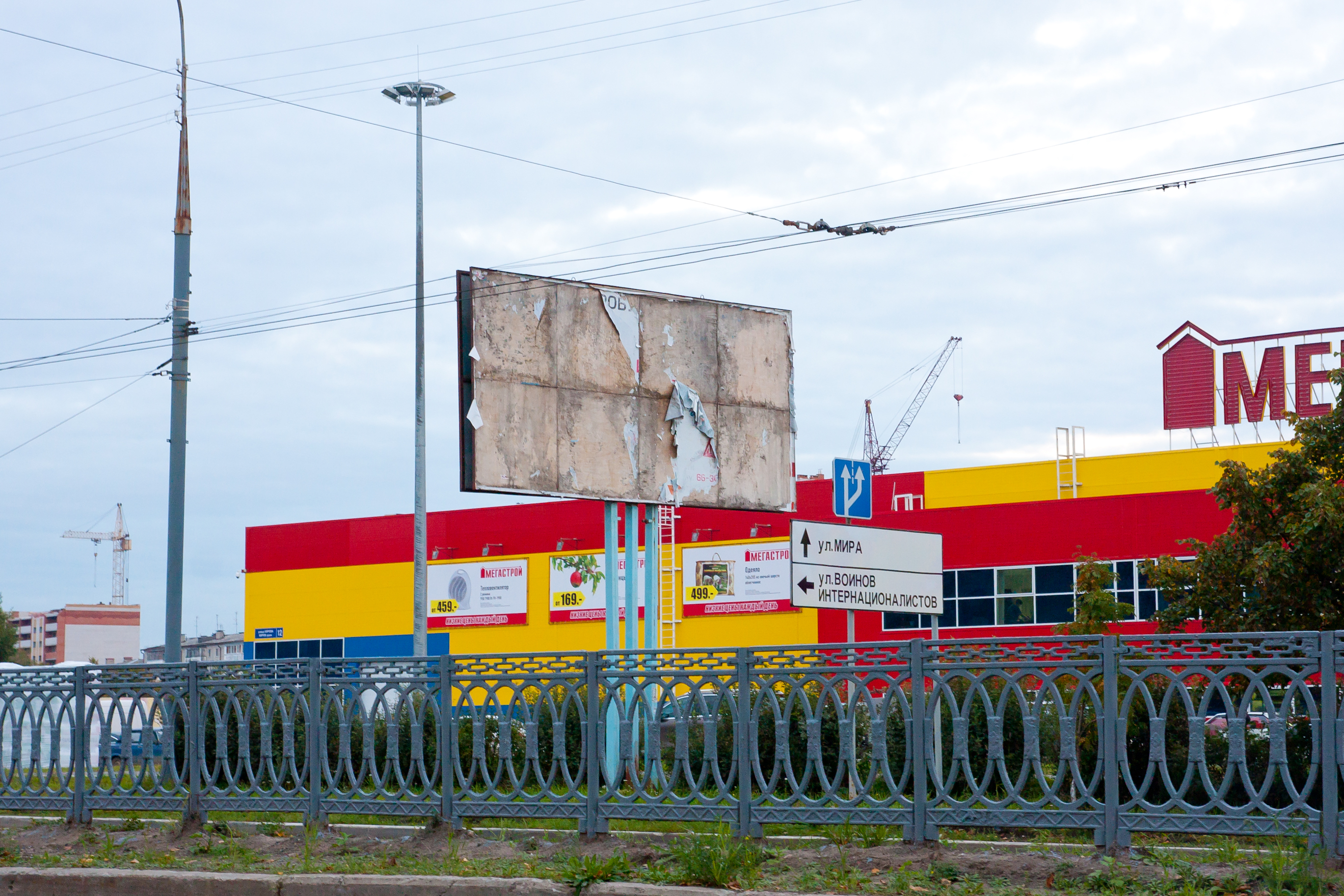 На ул. Кирова с ее гипер-мега-супербольшими торговыми центрами, билборды вообще никого не интересуют: