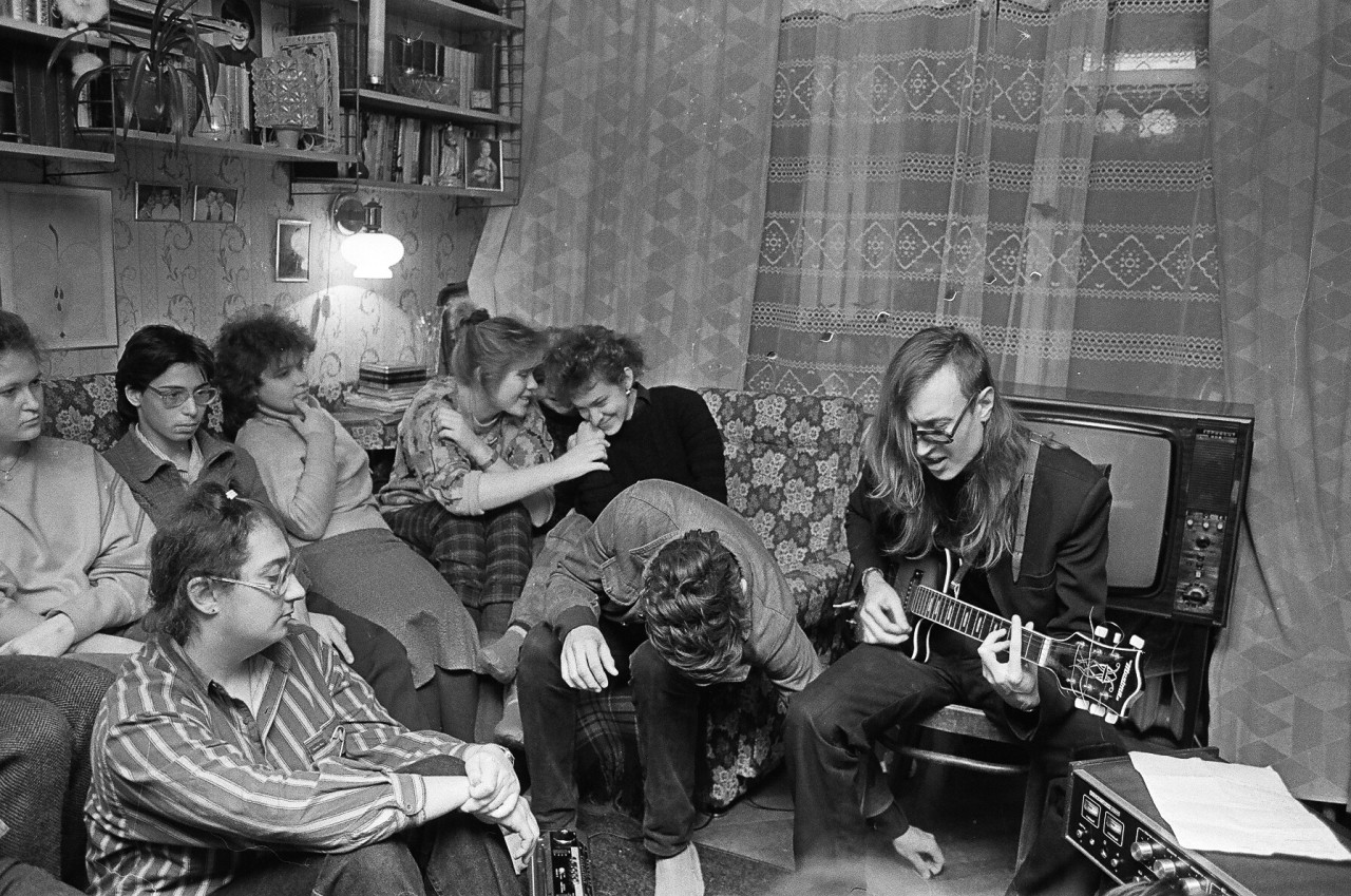 Квартирник на «Гражданке» в Питере, 1991 год.Фото: Дмитрий Конрадт Почему так происходит? Очевидно, он пробил некую психологическую отметку, за которой начинается хождение по кругу и состояние, когда «никто не проиграл», как сказано в последней песне его последнего альбома. Понятная юношеская одержимость Летовым, как оказалось, способна на свое циклическое продолжение, эта музыка как будто имеет свойство расти вместе с тобой, постепенно из блажной превращаясь в блаженную. Это происходит на всех уровнях — как в рамках индивидуального, так и общественного опыта. Так, например, его музыкальные психодрамы до сих пор потенциально вписываются едва ли не во все современные политические расклады — Летова пробуют записать в свои и правые, и левые, и либералы, и у всех, в общем, на это есть даже и некоторые резоны, и каждый норовит спеть «Все идет по плану» от первого лица, забывая о том, что она по сути жанровая зарисовка и аллегория.