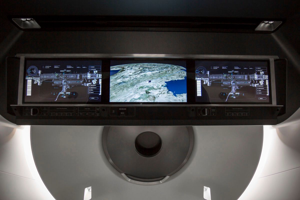 Фото: SpaceX Корабль Crew Dragon был создан так, чтобы полеты на нем были комфортными. В капсуле четыре окна, через которые экипаж может наблюдать за Землей, Луной и другими объектами Солнечной системы, не вставая со своих мест. Сидения изготовлены из карбона высшей пробы и материала алькантара, похожего на замшу.Фото: SpaceX Корабль оснащен продвинутой системой катапультирования капсулы с экипажем при нештатной ситуации (ее испытали в мае 2015 года). При катапультировании астронавты испытывают перегрузки, сравнимые с теми, что возникают на аттракционах в Диснейленде.Фото: SpaceX На экранах в салоне корабля экипаж будет видеть текущую информацию о положении корабля, расстоянии до пункта назначения и условиях за бортом.Фото: SpaceX Корабль оборудован климат-контролем. Астронавты могут установить температуру от 18 до 27 градусов.Фото: SpaceX Crew Dragon задуман, как полностью автономный корабль, но им могут управлять как астронавты на борту, так и сотрудники SpaceX с Земли.