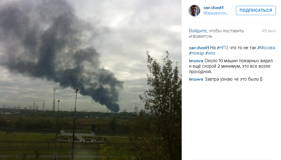 Пожар в районе московского НПЗ