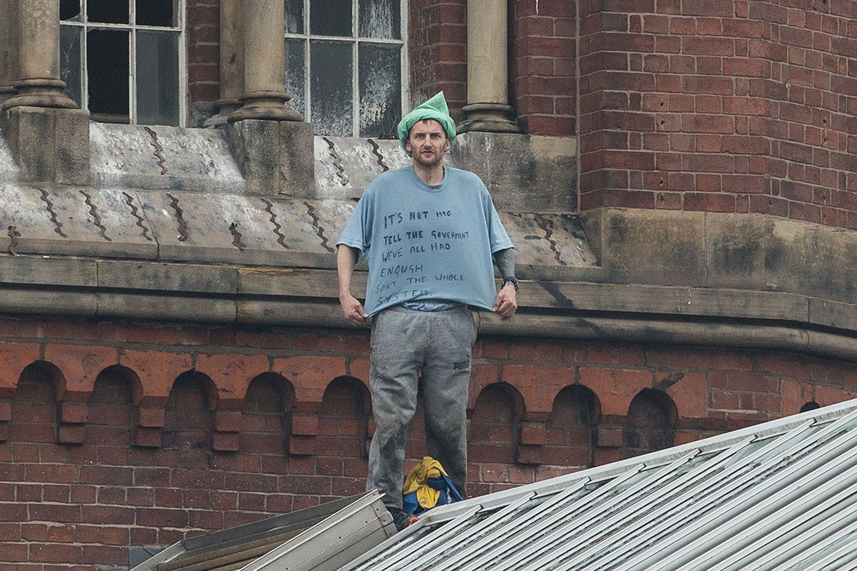 Днем в воскресенье, 13 сентября, заключенный тюрьмы Strangeways в Манчестере выбрался на ее крышу. Следующий 61 час он провел там. Стюарт Хорнер, отбывающий 27-летний срок за убийство дяди, протестовал против плохих условий содержания в тюрьме: он расхаживал по крыше в одном белье, бил стекла железными прутами, крушил камеры наблюдения. Другие заключенные поддерживали его изнутри тюрьмы, зеваки толпились за воротами, а местные СМИ вели прямую трансляцию с места событий. Когда к Хорнеру пытались приблизиться полицейские, он грозил им тем же прутом, и они отступали. На третий день заключенный согласился сдаться — в обмен ему пообещали дать пиццу и кока-колу. Стив Хорнер двое с половиной суток почти не ел и не спал. «Медуза» показывает, как проходила его акция протеста.